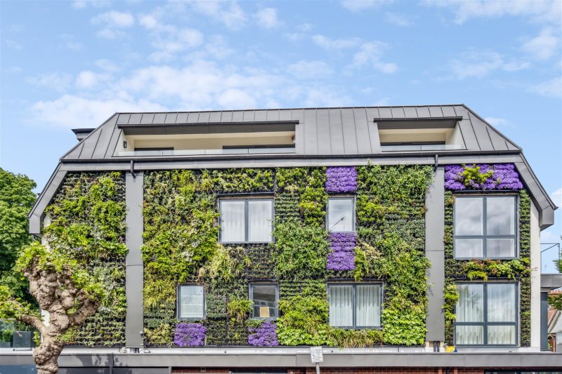Luxley House boasts net zero carbon credentials, 65m2 green living wall, solar panels & electric car charging points.
