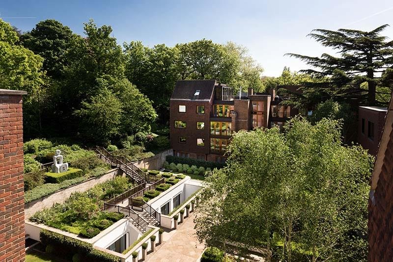 The three buildings are tied into the walled garden and enjoy both private and public spaces. The subterranean car park and leisure facilities which include swimming pool, gym & changing rooms are located below the courtyard with direct secure lift access to all apartments. The grounds extend to two acres, with mature trees and shrubs and extensive landscaping.