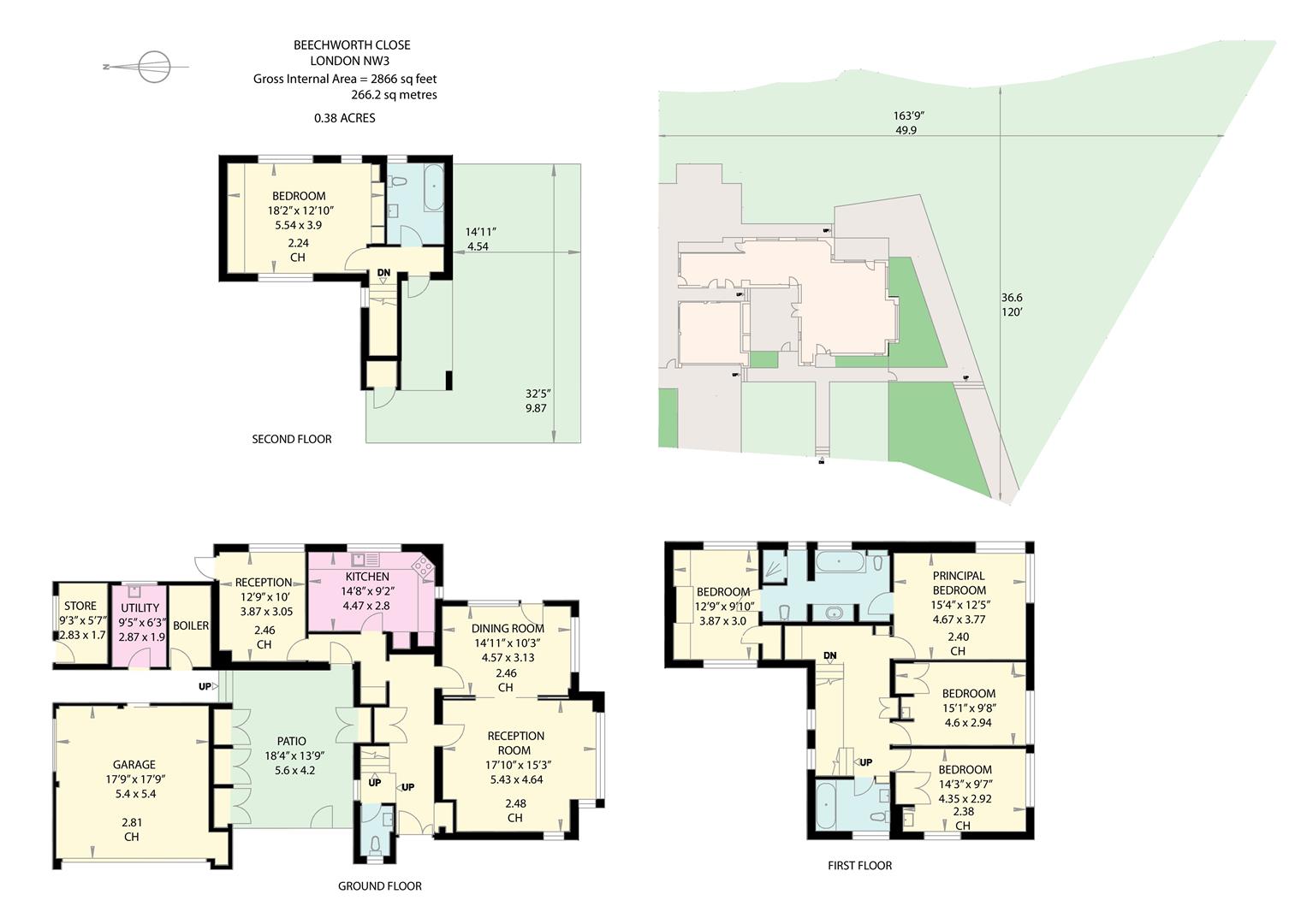 On the market for first time in over 38 years, we are proud to offer this 1960s designed freehold detached family home, arranged over 3 floors and sitting proudly on 0.38 of an acre (0.54 Hectares) manicured garden, set in an exclusive cul-de-sac off West Heath Road, in prime Hampstead.