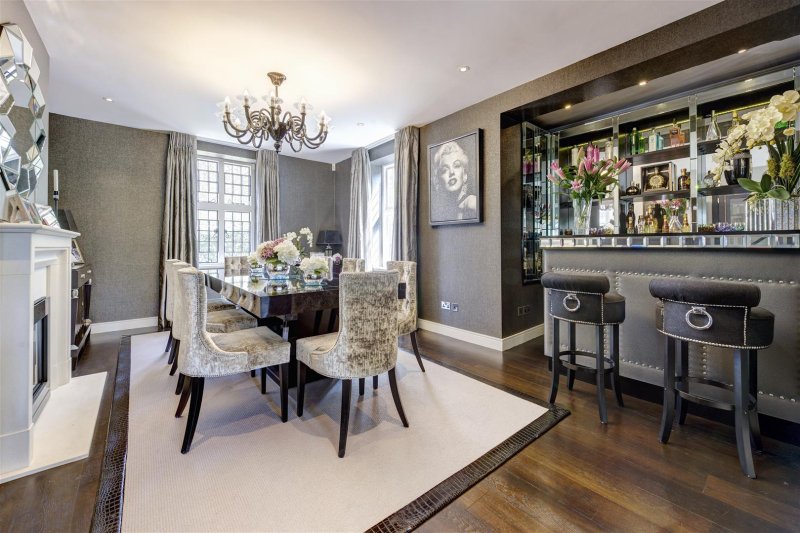 This fine home has been interior designed throughout and on the ground floor features a magnificent and spacious kitchen breakfast family room with an abundance of natural light overlooking the garden , an intercommunicating drawing room and dining room with a built in bar as well as a home study, utility room with a separate trades entrance and a guest WC.