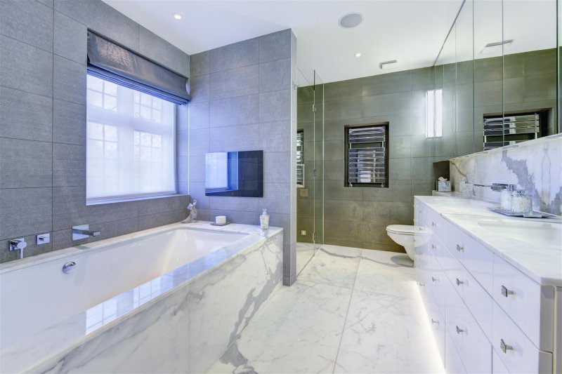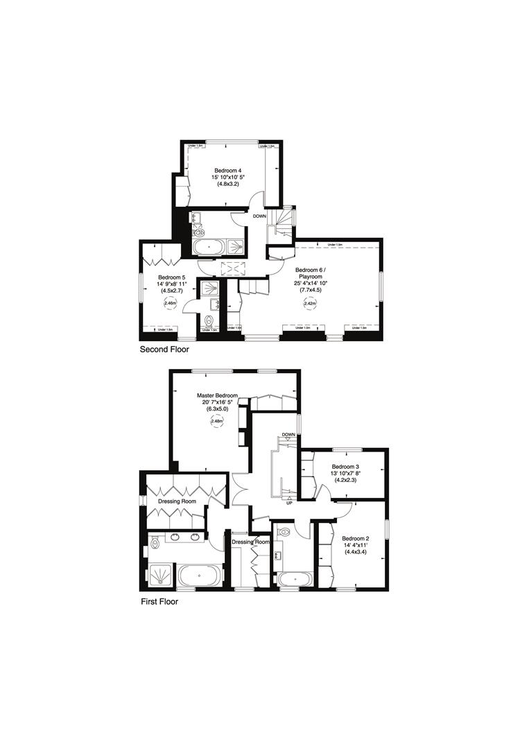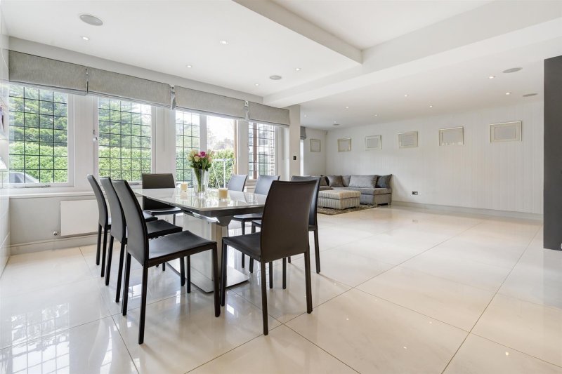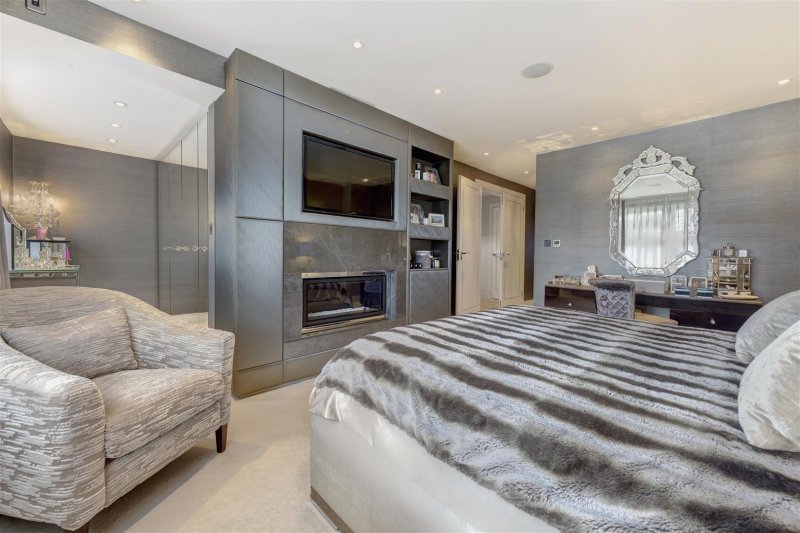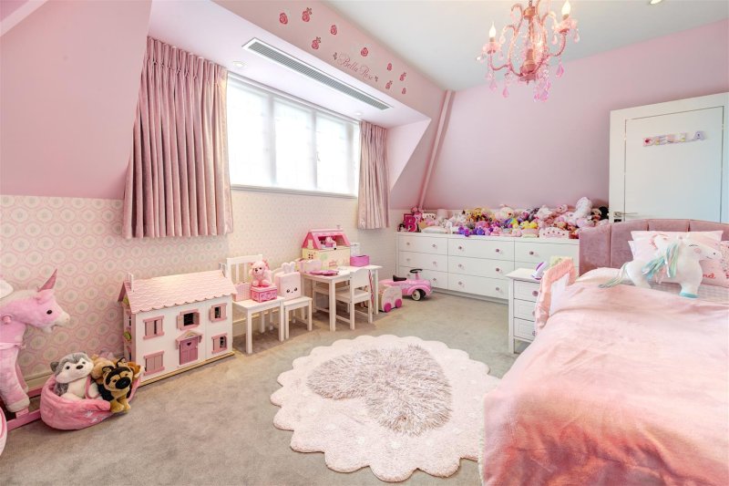 The first floor features an indulgent master bedroom suite with his and hers dressing rooms and a beautifully appointed marble bathroom with a separate shower and built in TV, and a further 2 bedrooms and family bathroom. The top floor includes 2/3 bedrooms (1 en suite and a family bathroom) and a large playroom.