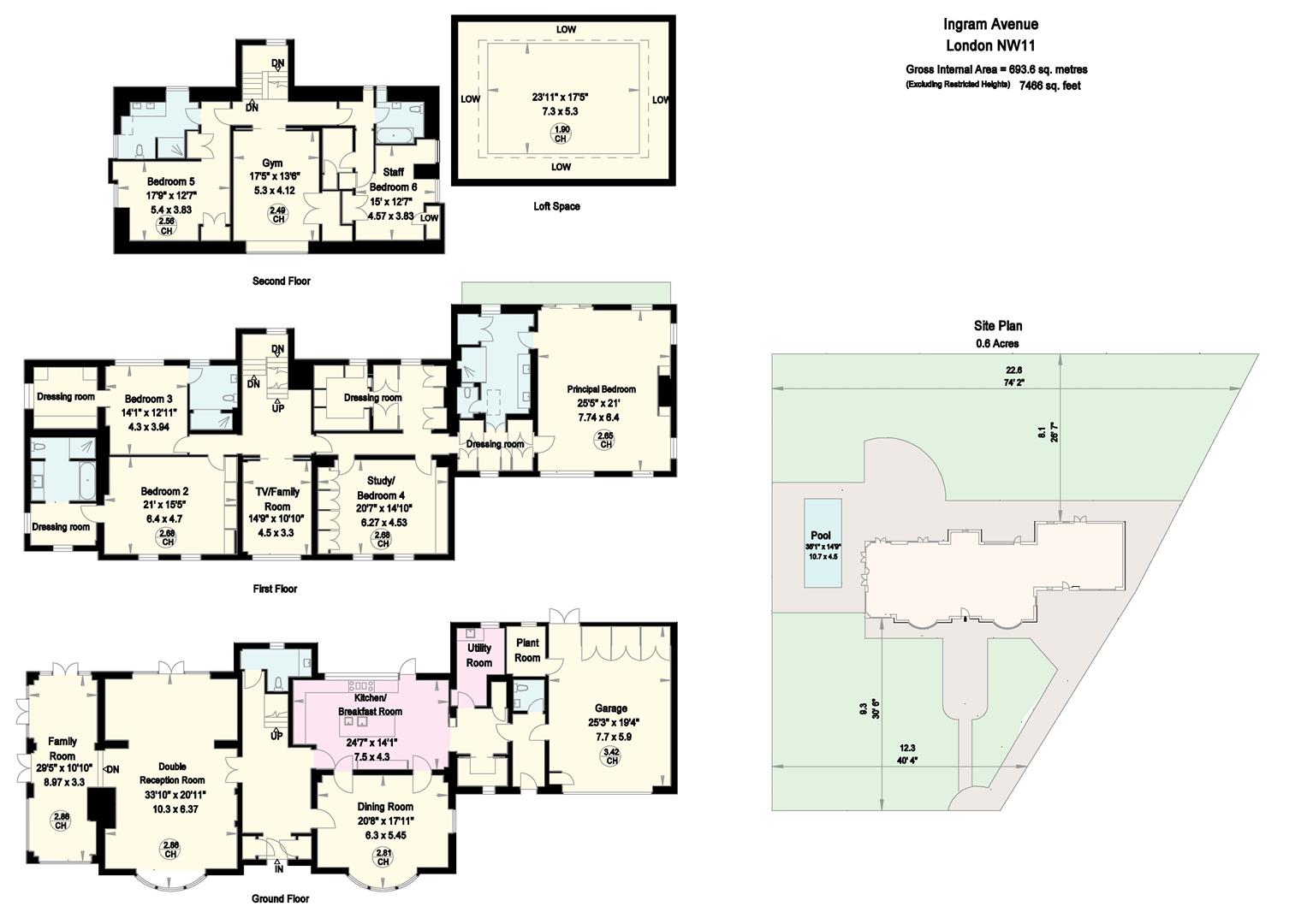 On the first floor there 3/4-bedroom suites including a majestic, oversized principal bedroom with 2 dressing rooms, a private study (which could be used as a bedroom 4), a beautiful ensuite bathroom and a terrace