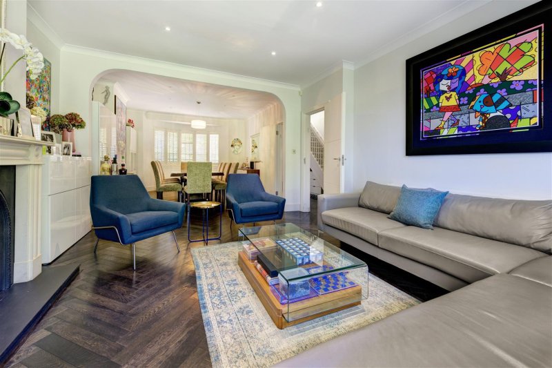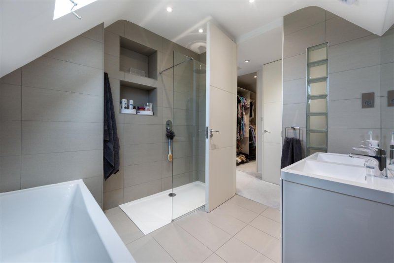On the first floor there is a large landing with 4 good sized bedrooms, (1 with an en-suite bathroom) and a separate family bathroom housing the utilities. On the top floor there is an indulgent principal bedroom suite, with views over the rear garden, a superb 'walk in' dressing room with further fitted wardrobes in the bedroom itself and an ensuite bathroom. Further benefits include off street parking for 2 cars and within a short walking distance to Kerem & Annemount School, Lyttelton Playing fields and the amenities of The Market Place.