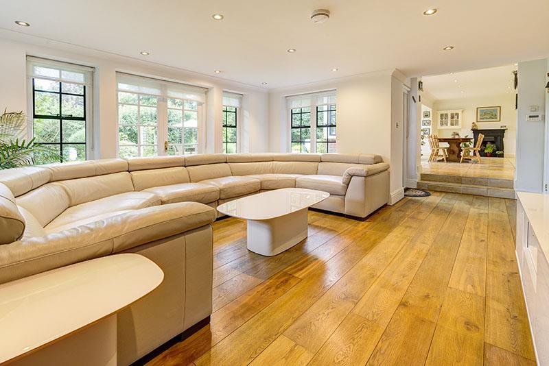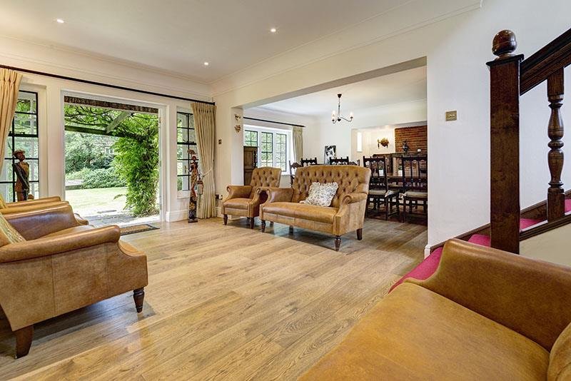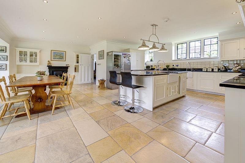 On the ground floor as you enter, you walk into an unusually spacious lounge hall, opening into a double aspect dining room with a feature fireplace and double French doors leading directly out onto the garden. There is a stunning (26 x 24) shaker style, family-kitchen diner complete with a range cooker, 2 butler sinks, centre island, beautiful stone flooring, fitted window bench seating and ample storage. Off the kitchen there is a lovely tv/family room with French doors also on to the garden, a separate playroom/gym and a spiral staircase leading up to a charming den.