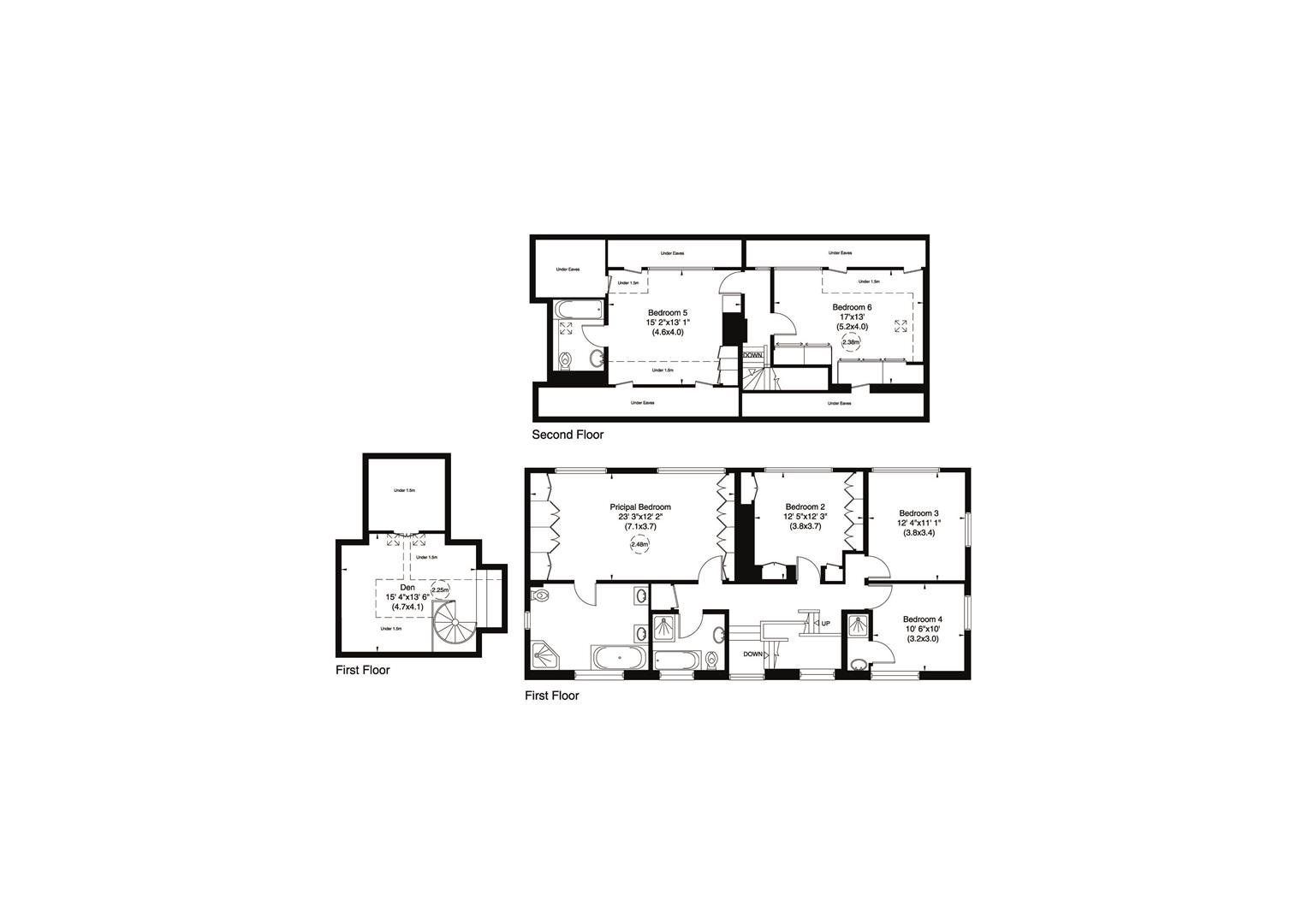 On the first floor there are 4 bedrooms (2 ensuite and a family bathroom). The principal bedroom suite has exquisite views over the garden and a wonderful ensuite bathroom with separate his and her sinks, separate bath, shower and wc. The second floor offers 2 double bedrooms with vaulted ceilings and a further en suite bathroom to the larger bedroom.