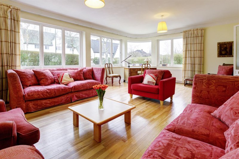 property with a lovely curved, glazed window allowing for vast amounts of sunshine to penetrate through. The study and dining room overlook the rear of the house with both rooms leading out onto a large rear garden through French doors. The kitchen diner spans 17 x 15 with an additional utility room.