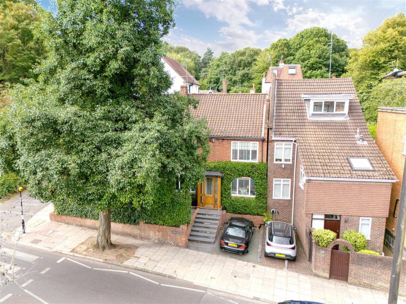 The top floor offers a third double bedroom with an en suite shower room, air conditioning and access to a generous storage cupboard. Additional benefits include off-street parking, in a highly sought-after location, just a short walk from the open spaces of Golders Hill Park, the Hampstead Heath Extension, and excellent transport links at Golders Green Station.
