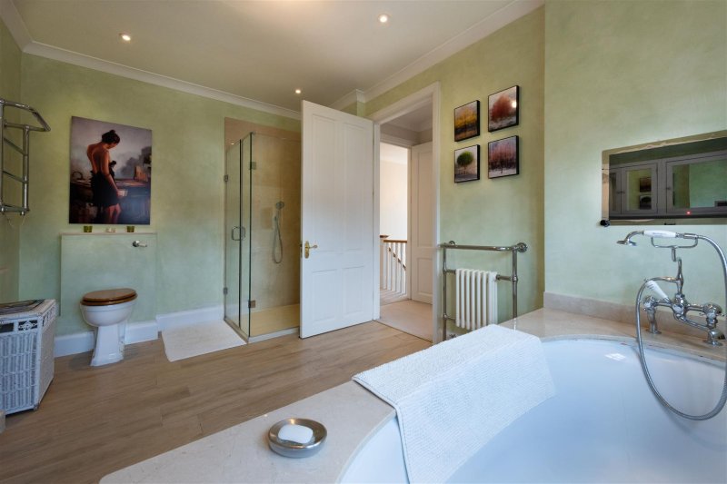 On the first floor there is a large principal suite with a lavish dressing room and a substantial en suite bath and shower room. Three further bedrooms occupy this floor, all with fitted wardrobes and an additional family bathroom. There is also access to a vast, fully carpeted & heated loft space.
