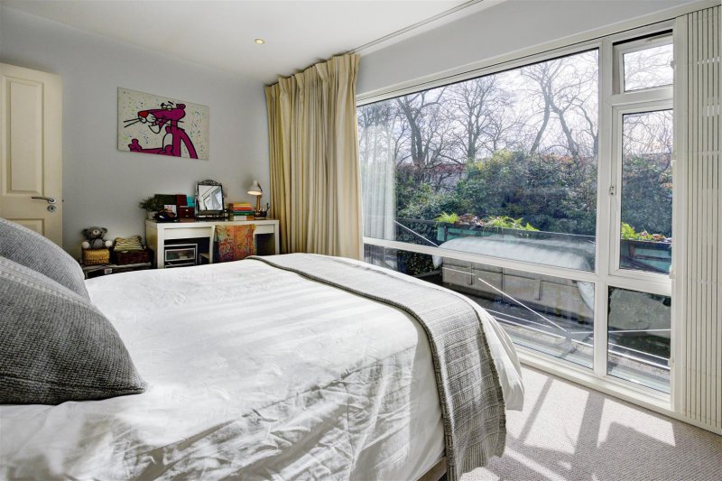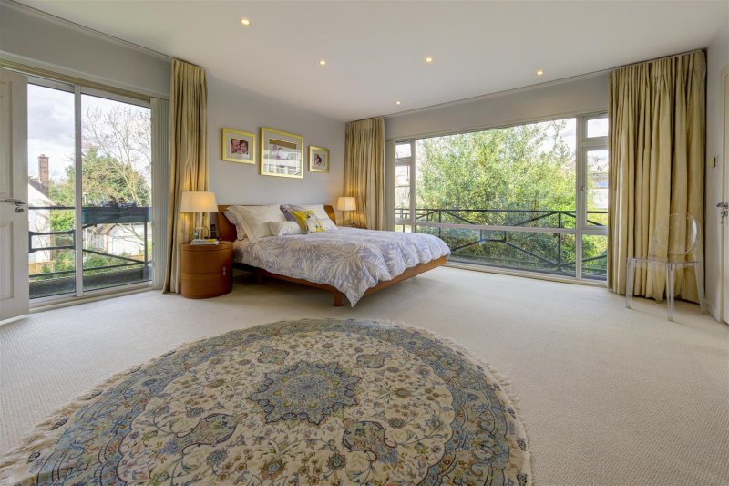 The first floor provides a master suite with a double aspect, floor to ceiling windows, en-suite bathroom and large walk in closet, four further bedrooms and two further bathrooms, one en-suite.