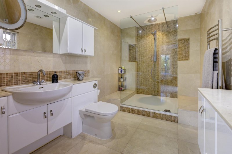 The ground floor offers a double height entrance lobby flooded with light from the huge overhead skylight. Off of this is a 36' double reception room with a triple aspect over the west facing wrap-around garden. There is also a family/breakfast room leading directly into the kitchen, a large utility room, with plant room plus a study which doubles as a guest/maids suite with ensuite suite shower room.