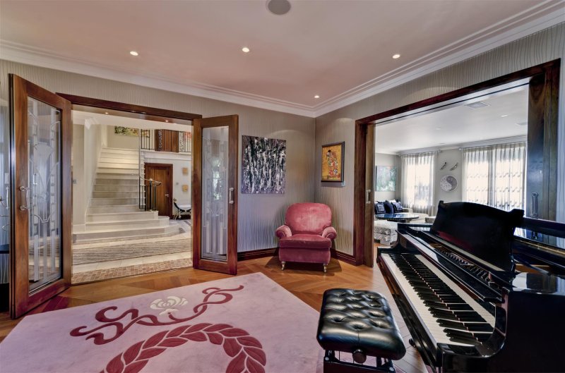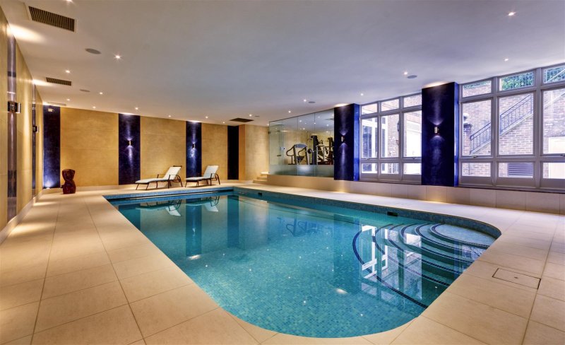 The garden level is devoted to luxurious leisure and includes a large swimming pool, gymnasium with a glass wall overlooking the pool, steam room and two changing rooms.