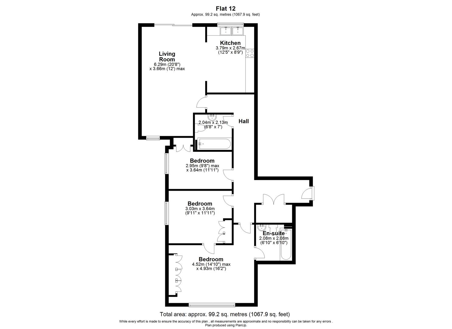 This 1067 sq ft ground floor apartment offers 3 bedrooms, 2 bathrooms (one en suite bathroom), a very large open plan living room and Kosher kitchen along with direct access to a private balcony.
