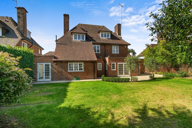 Large double reception room, separate dining room, TV room, large newly fitted kitchen with dining area and state of the art appliances, utility room, master bedroom with ensuite dressing room and bathroom, family bathroom, 2 ensuite shower rooms, guest cloakroom, off-street parking for 2 cars and newly landscaped garden.